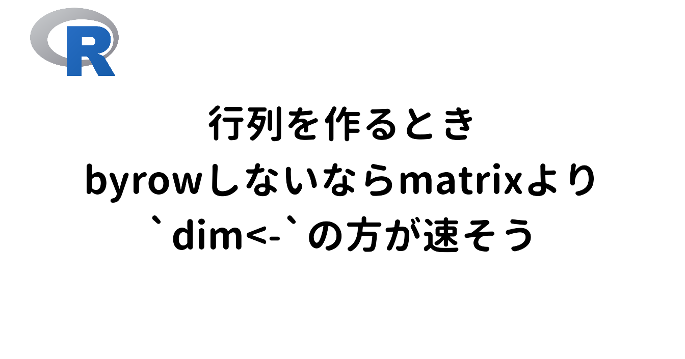 シミュレーションとかで何万回~も回す人向け。Rで行列を作るときに、要素をbyrowで入れないなら`dim<-`()使う方が速い。